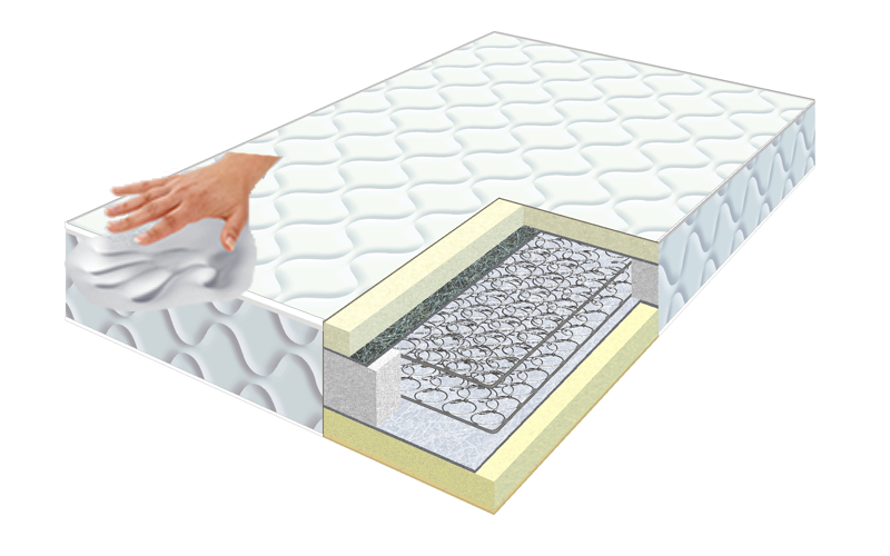 Stratul de memorie de grosime 5 cm este aplicat peste o baza din spuma poliuretanica sau una din arcuri Bonell. Aceste saltele au proprietati hipoalergenice, iar husa saltelei este detasabila si lavabila. Materialul husei este din amestec de fibre, 80% bumbac si 20% din fibre sintetice.
